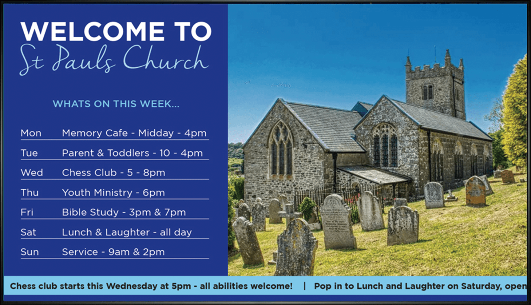 Keep your congregation informed and connected with real-time announcements, event updates, and prayer requests displayed on our LED screens. Whether it’s sharing service schedules, upcoming events, or urgent messages, digital signage ensures that everyone stays informed and engaged with the life of the church.