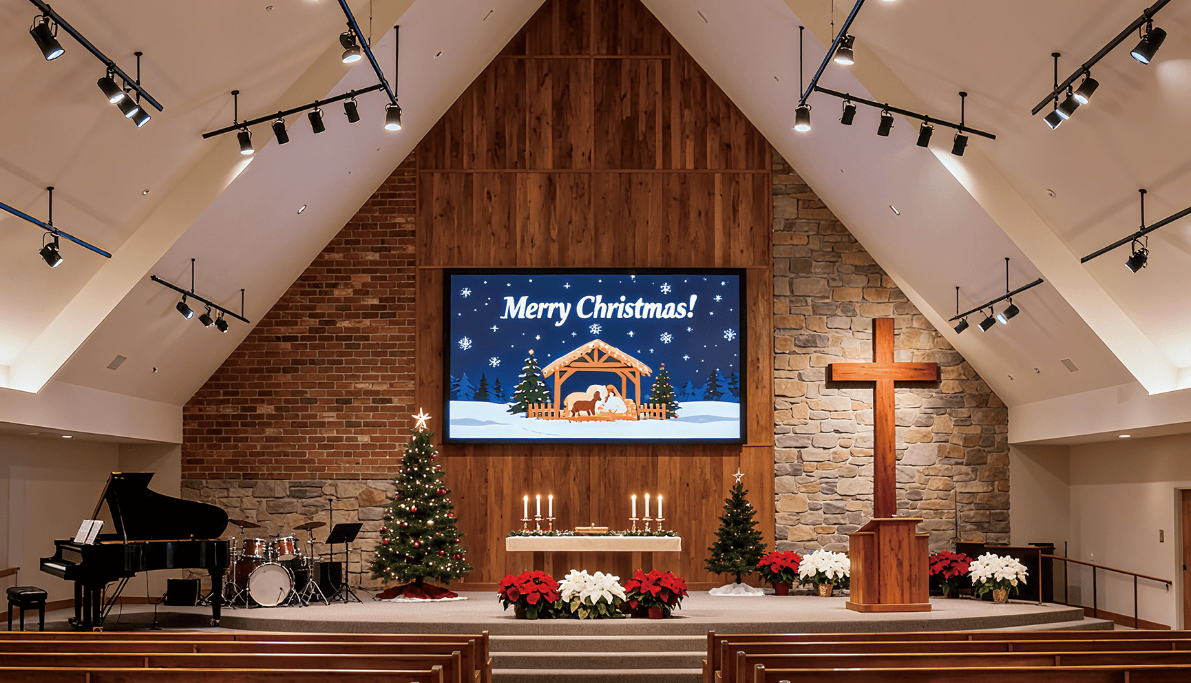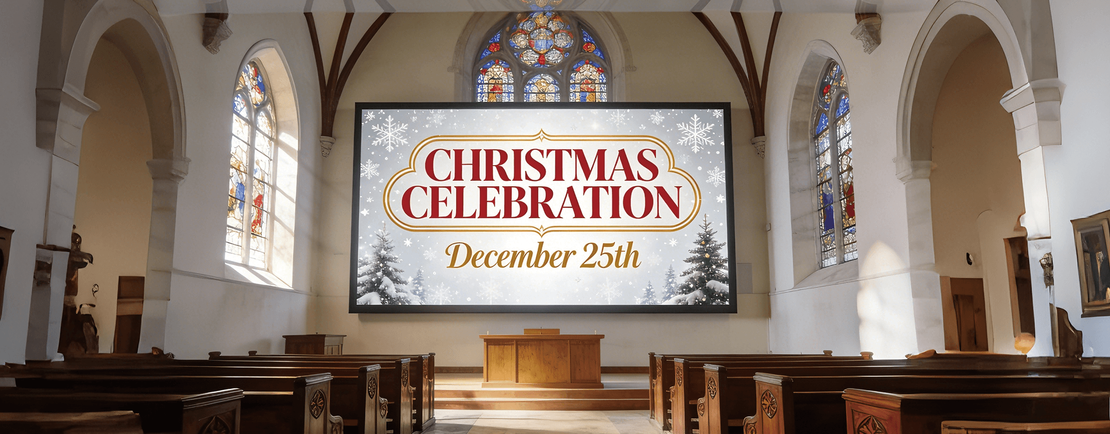 Ideal for various settings such as sanctuaries for sermon presentations, fellowship halls for community events, lobbies for welcome messaging, and outdoor spaces for services, announcements, and outreach activities. These versatile applications help churches deliver impactful communication and create meaningful visual engagement across all ministries.