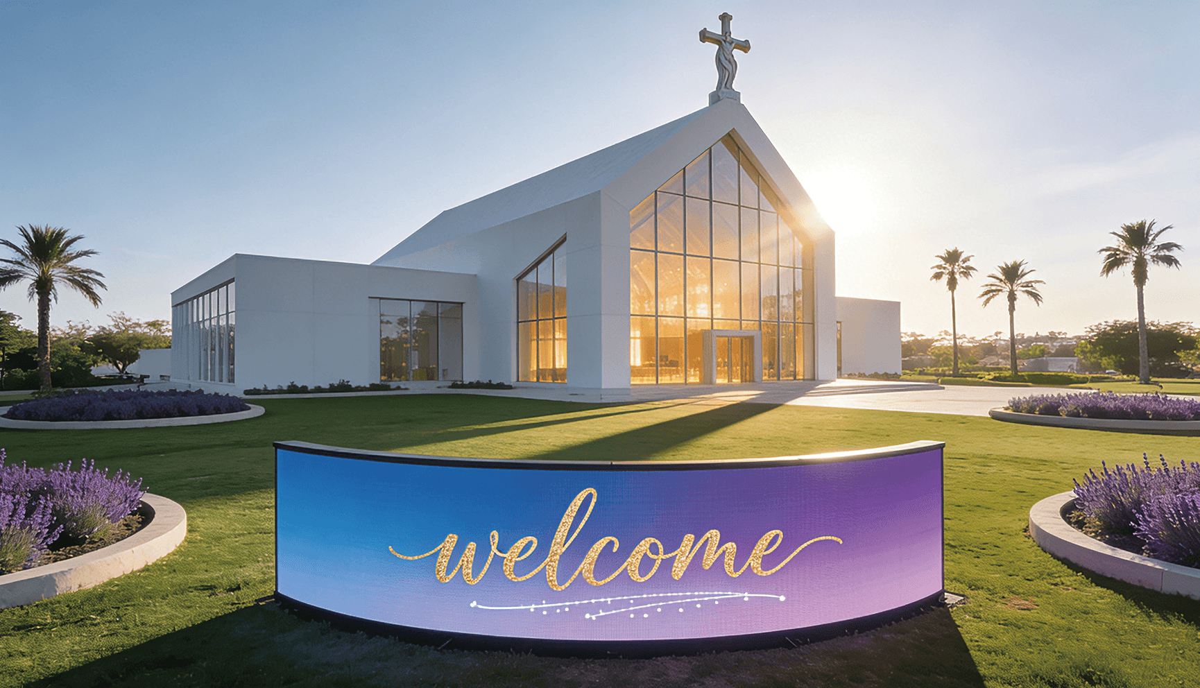 Positioned in the church entrance or lobby, a welcome LED screen warmly greets visitors and conveys essential information, from scriptures to event updates, helping to foster a sense of community.