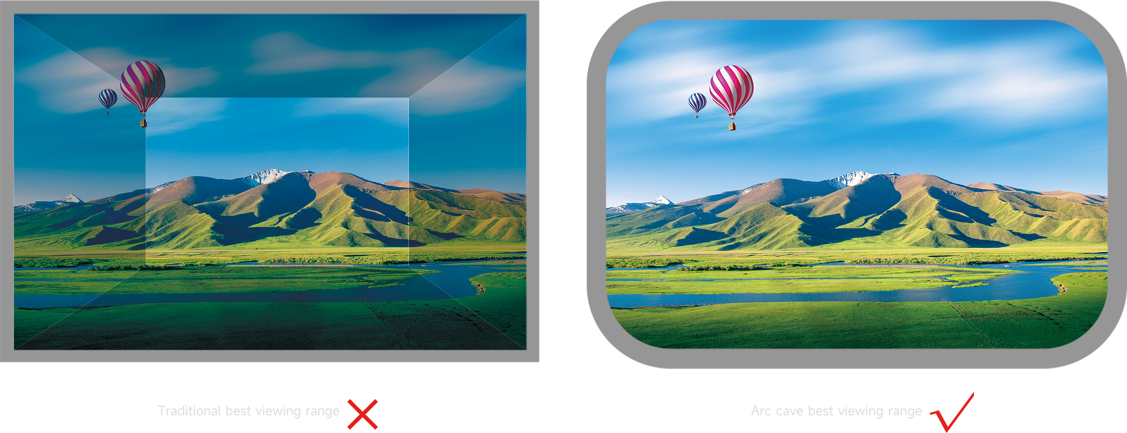 The innovative design expands the optimal viewing range, allowing multiple viewers to enjoy clear and immersive content simultaneously.